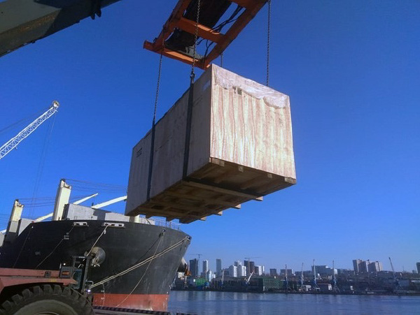 На фото представлен негабаритный груз: мобильный подъемник блоков TTR 60 (2 единицы) - BT, оснащенный электродвигателем и гидроцилиндрами для поддержки и перемещения груза в горизонтальной плоскости и гидромотором для движения. Транспортировка груза осуществлялась по маршруту Южная Корея – Владивосток – завод ССК «Звезда». Каждый мобильный подъёмник блоков обладает грузоподъёмностью от 60 тонн и более и применяется при строительстве судов при перемещении блоков для сварки отдельных частей судна, эксплуатируется в различных климатических условиях, в том числе на Крайнем Севере в любых погодных условиях.
